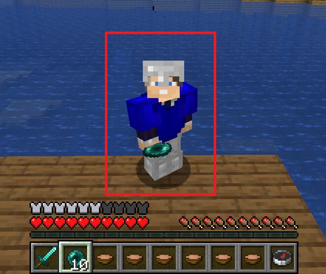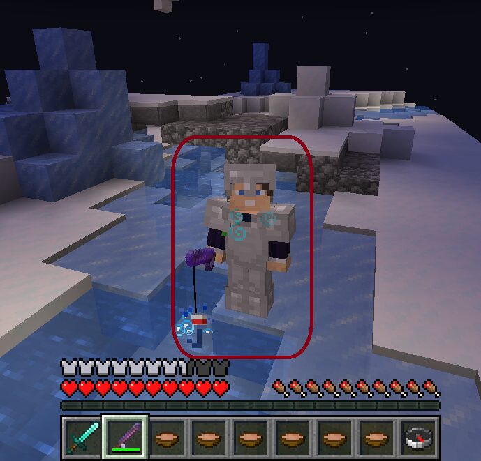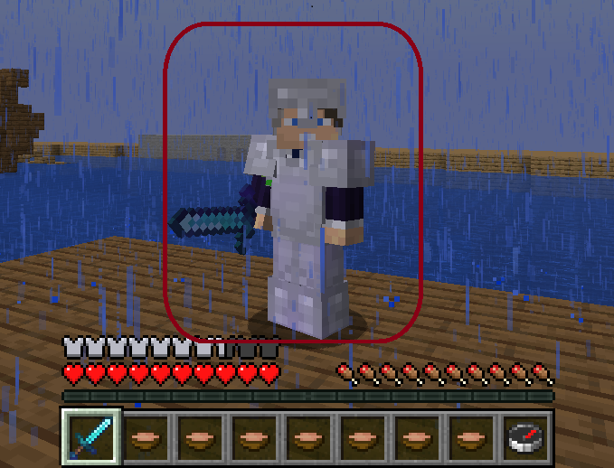 Este kit contém: armadura de ferro, espada de diamante, vara de pesca (Inquebrável 5) e sopas.