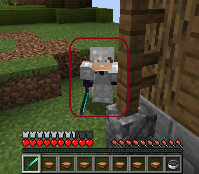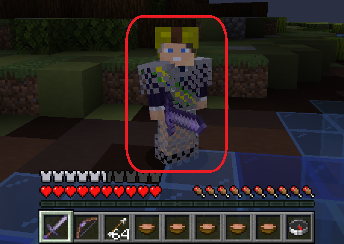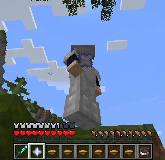 Você só precisa de um bloco para dar uma investida para todos os lados. E sua armadura ainda muda durante o processo!