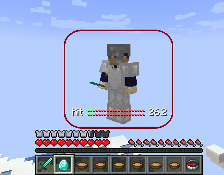 Este kit contém: armadura de ferro, espada de diamante e sopas.