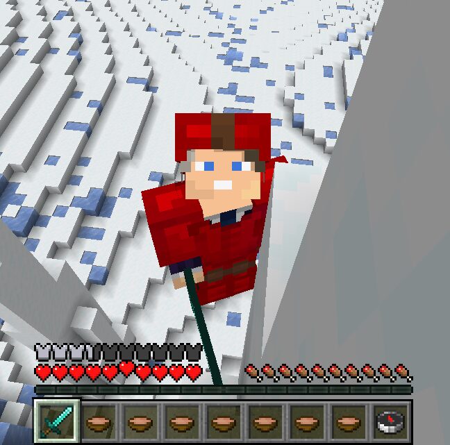 Este kit contém: capacete de couro (Inquebrável 1), peitoral, calça e botas de ferro, espada de diamante, bola de neve e sopas.