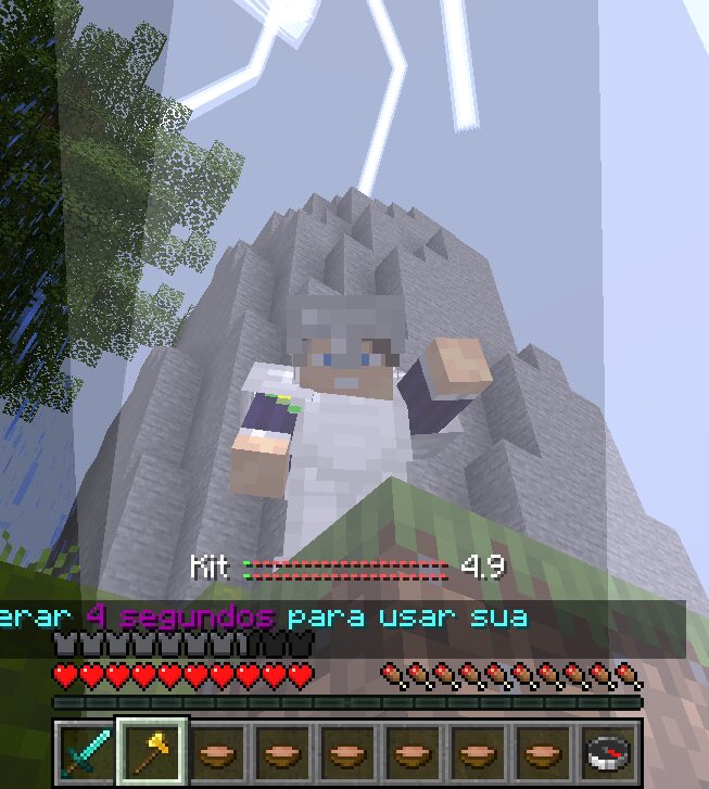Este kit contém: armadura de ferro, espada de diamante, machado de ouro especial e sopas.