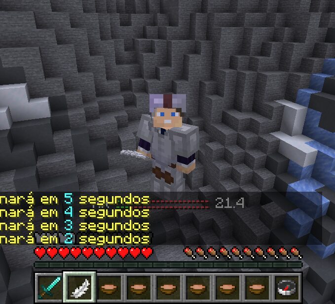 Este kit contém: armadura de ferro, espada de diamante, relógio especial e sopas.