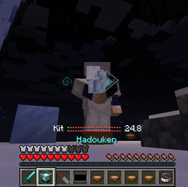 Este kit contém: armadura de ferro, espada de diamante, sopas.