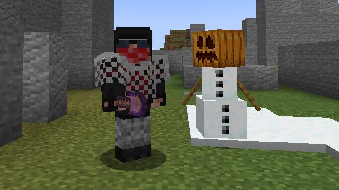 - Contém: peitoral de malha, pá de madeira (Eficiência 2), 2 abóboras e 4 blocos de neve.