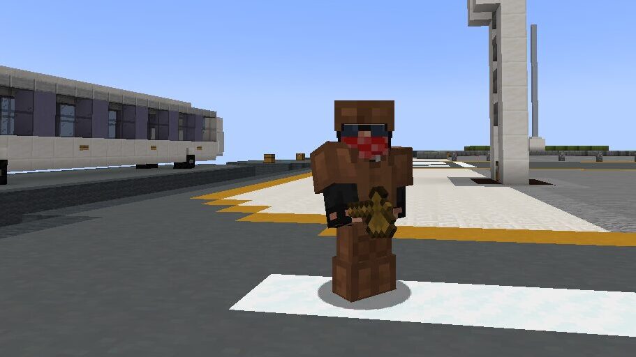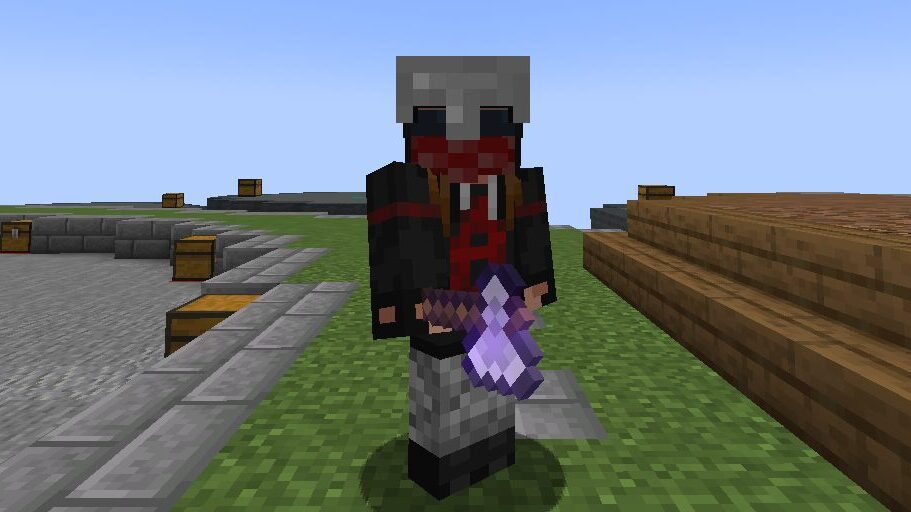 - Contém: capacete de couro, espada de madeira e 64 blocos de lã vermelha.