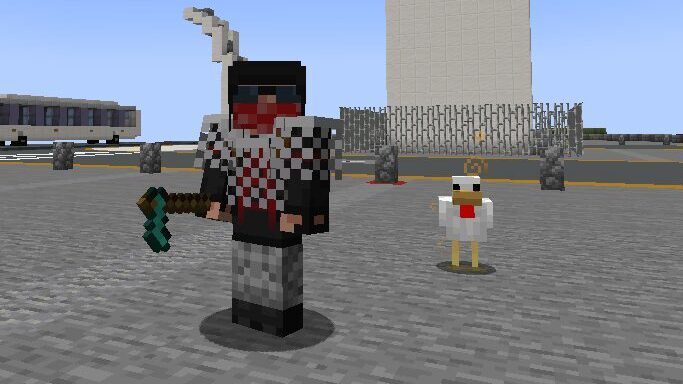 - Contém: capacete de ferro (Proteção Contra Explosões 3), picareta de ferro (Eficiência 3, Inquebrável 3), 3 frangos assados, 4 TNTs e 4 tochas de redstone.